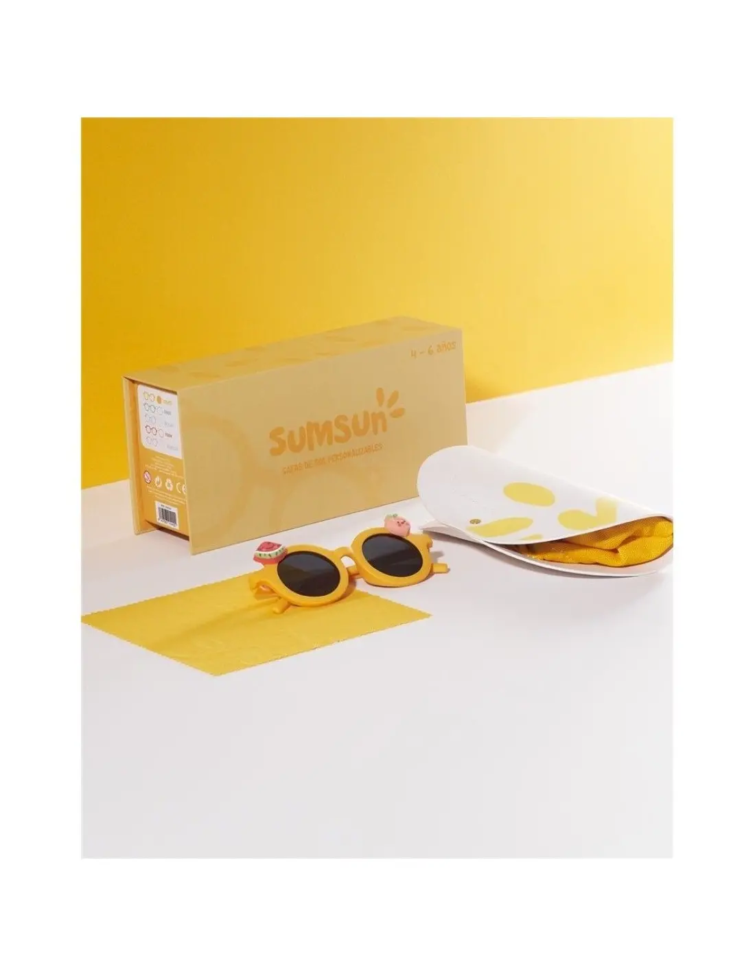 - Contenido del paquete: Un par de gafas de sol, set de pegatinas temáticas de frutas, manual de instrucciones.