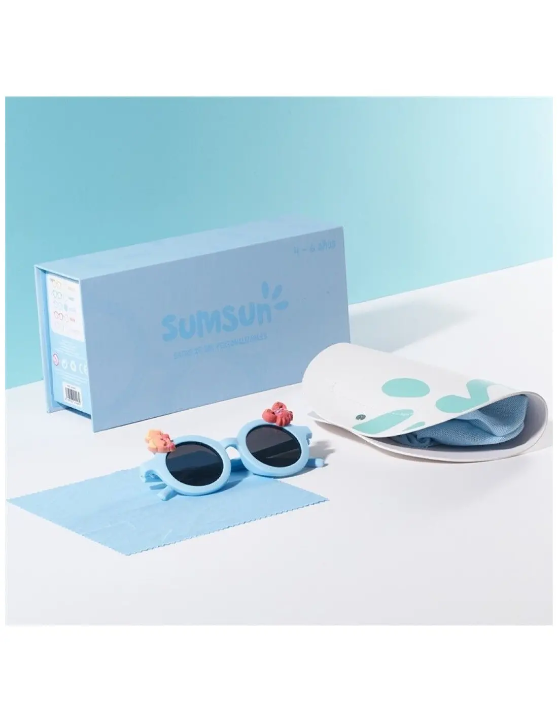 - Contenido del paquete: Un par de gafas de sol, set de pegatinas temáticas de océano, manual de instrucciones.