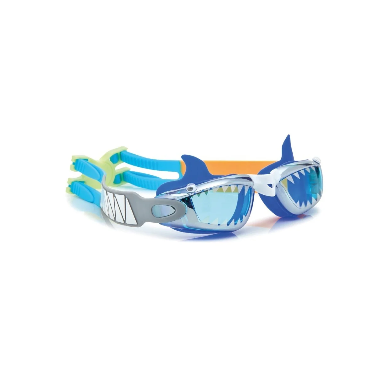 Las gafas de natación Jawsome Jr Small Bite de Bling2o destacan por su original diseño de tiburón con detalles que imitan dientes y aletas, convirtiéndolas en una opción ideal para pequeños amantes del océano.