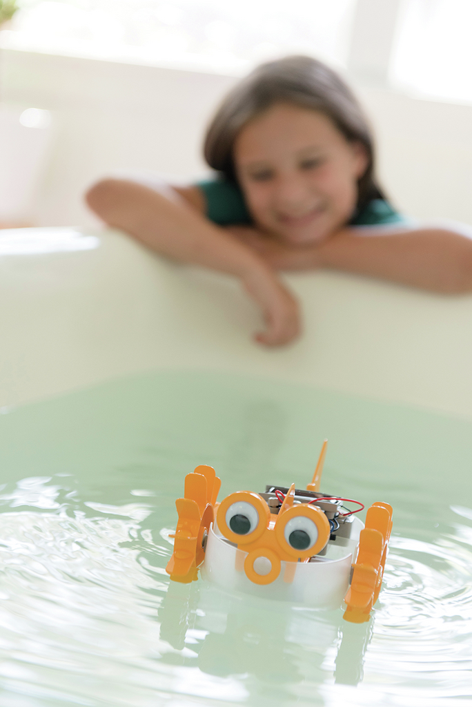 Este set permitirá a los pequeñines construir un pez robot que flota y pedalea sobre el agua gracias a la luz solar o una batería regular. Incluye: partes del robot, un panel solar e instrucciones detalladas. Requiere 1 pila AAA (no incluida).