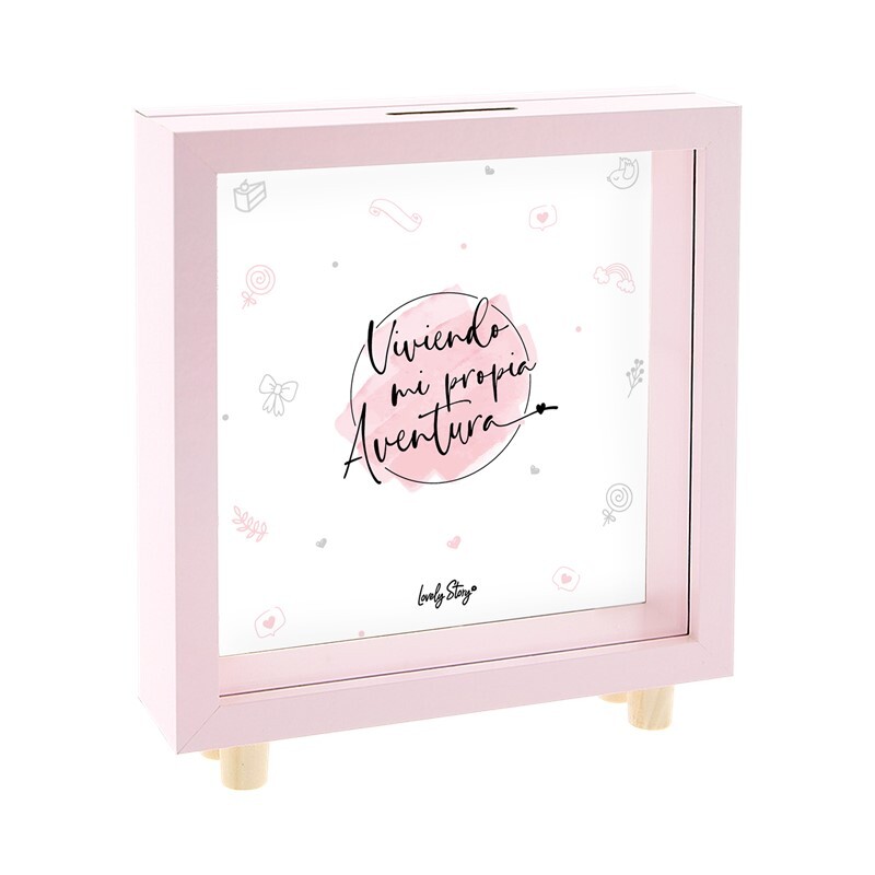 Esta hucha de madera en color rosa, con el mensaje «Viviendo mi propia aventura», es perfecta para guardar tus ahorros mientras te embarcas en emocionantes aventuras. Un detalle decorativo y funcional que te motivará día a día.