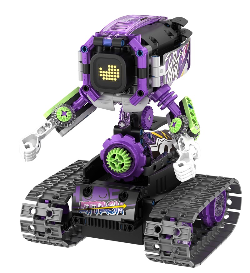 Un kit de construcción con diseño futurista y paneles personalizables. ¡Crea tres robots distintos y dales vida con tus manos!