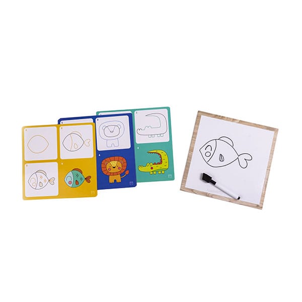 Juego para aprender a dibujar, desarrollar la coordinación ojo mano y la creatividad. Sirve para aprender a dibujar paso a paso con la ayuda de unas plantillas. En el juego hay tres niveles de dificultad amarillo, azul y turquesa.