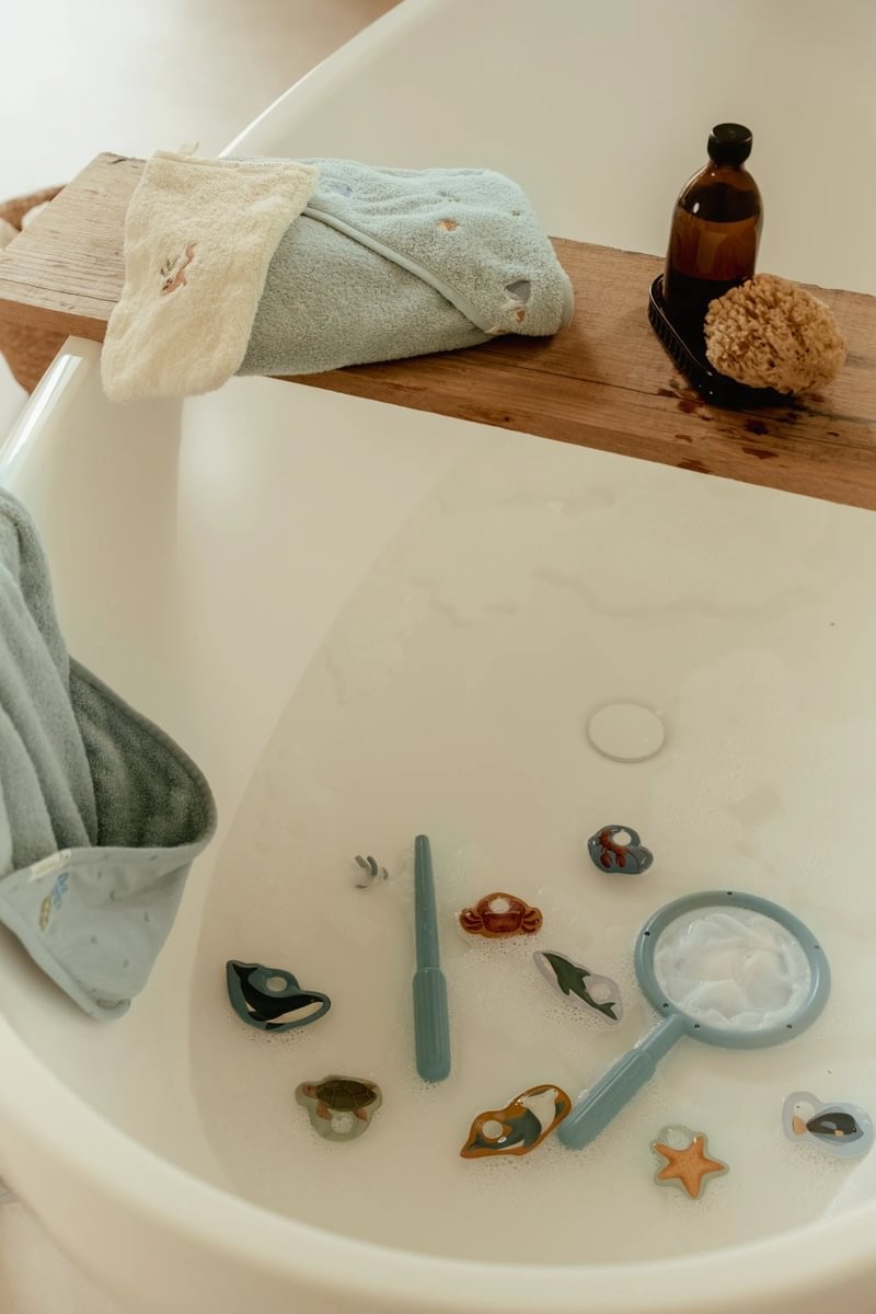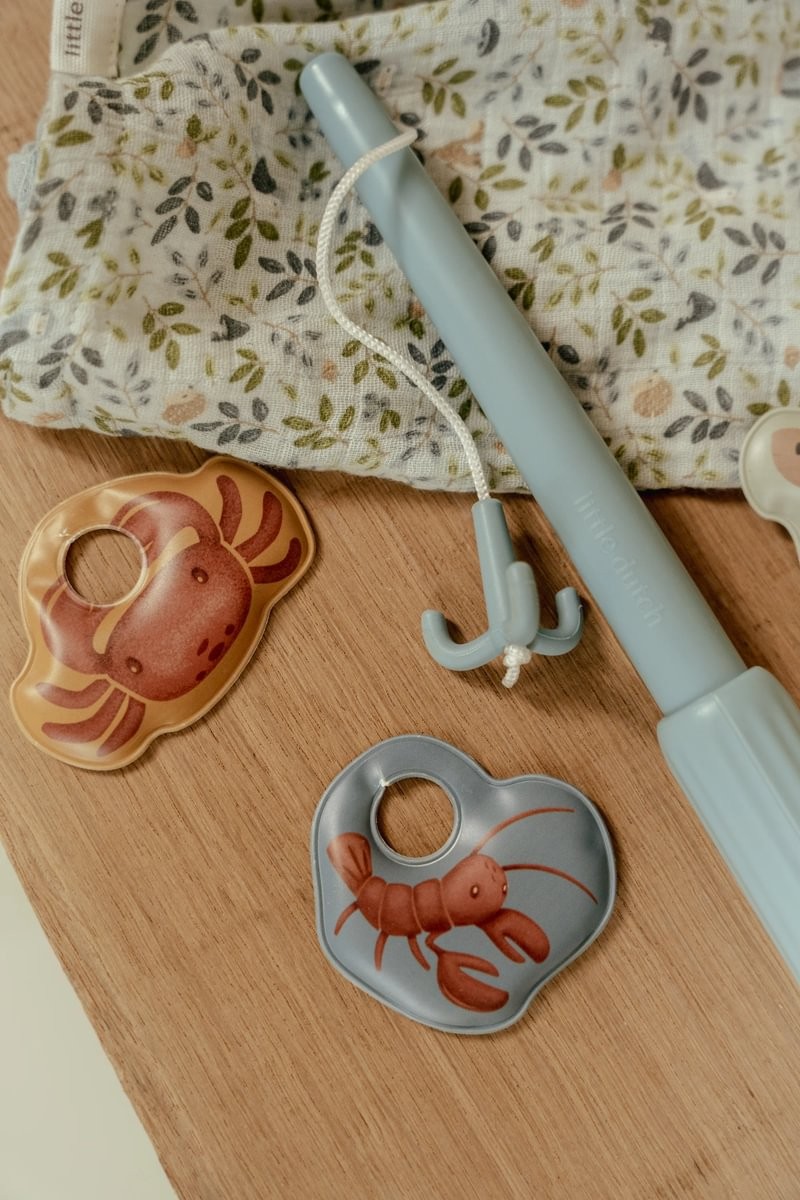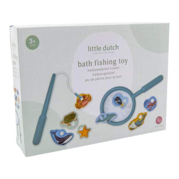 Juego de Pesca de Baño Azul – Juguete acuático con red y animales marinos – Little Dutch – Diversión desde 3 años
