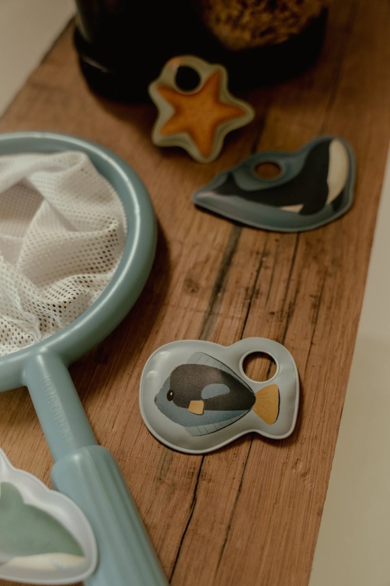 El Juego de Pesca de Baño Azul de Little Dutch transforma el baño diario en una experiencia llena de diversión y aprendizaje. Con su diseño en tonos suaves y su estilo cuidado, este set invita a los más pequeños a disfrutar de una actividad que combina juego, concentración y destreza.
