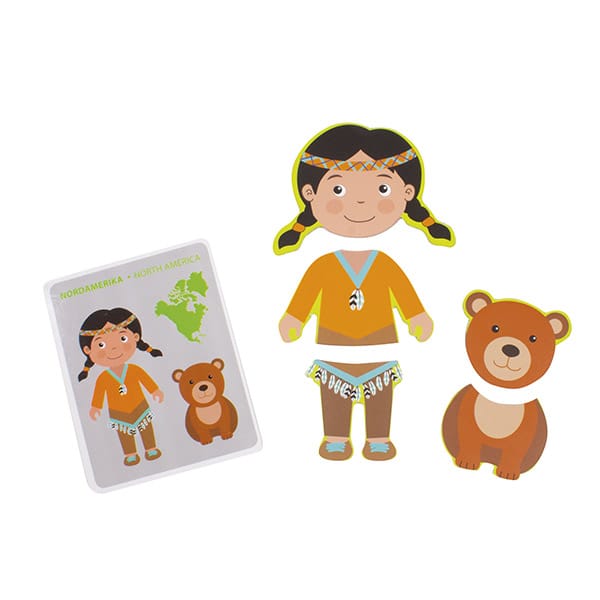 Este entretenido juego magnético estimulará la creatividad y la imaginación de los más pequeños de la casa. Las diferentes tarjetas tienen bonitas ilustraciones de personajes y animales con las que deberán de aprender a asociar y identificar con sus respectivas nacionalidades o procedencias de todo el mundo.