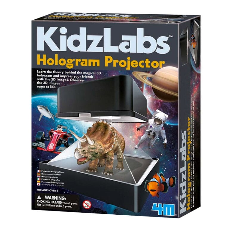 Divierte a tus amigos y familiares con todos estos emocionantes trucos ópticos. Con el Kidz Labs Hologram Projector 4M podrás aprender toda la teoría que hay detrás de los hologramas 3D.