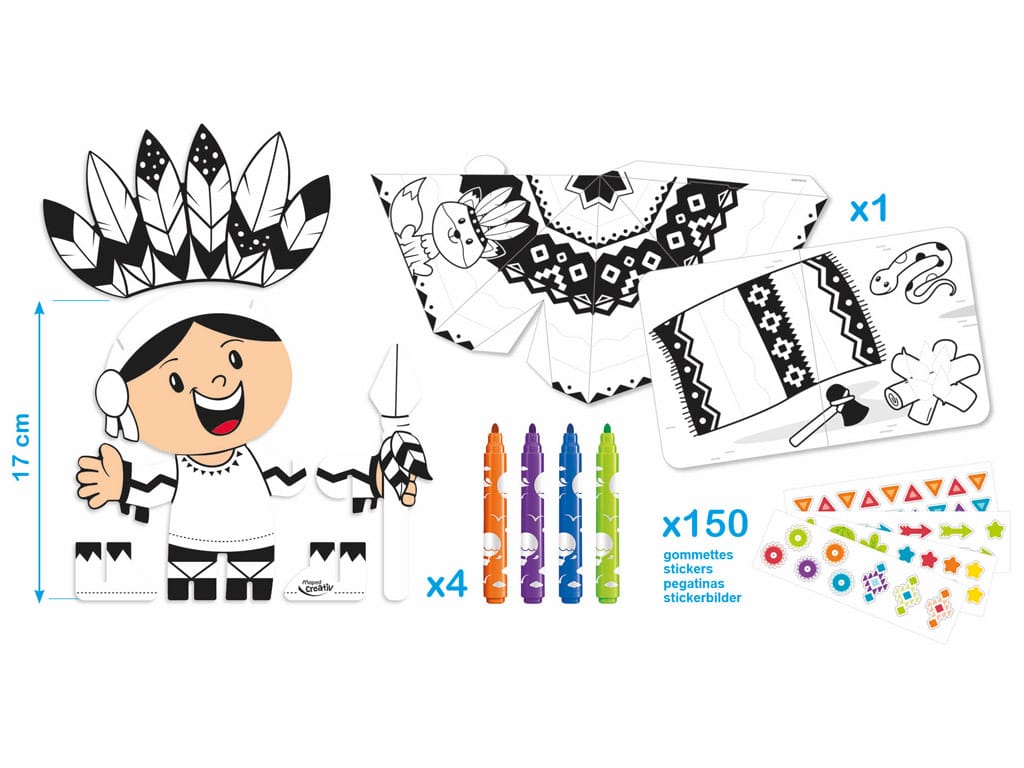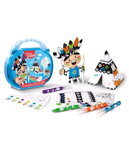 Mis Primeras Creaciones Maped Creativ Personaliza al indio y su tipi con rotuladores y pegatinas El maletín contiene: 4 rotuladores jumbo 150 pegatinas baby 1 tipi y alfombra para colorear 1 personaje en 3D para construir Indicado para mayores de 2 años