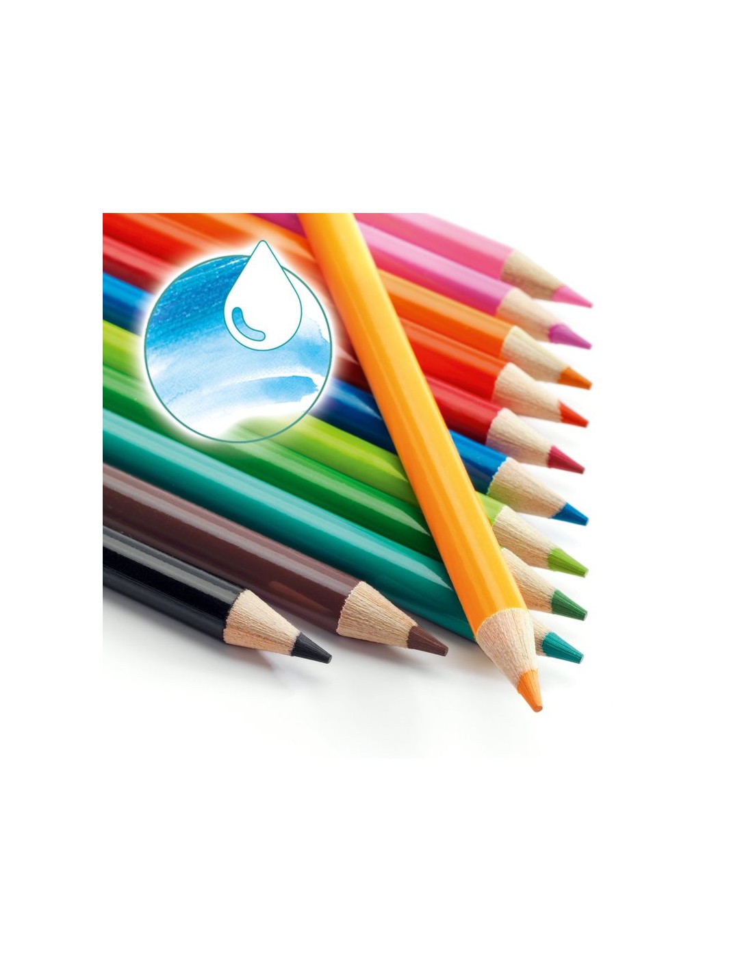 Estuche de 12 lápices acuarelables. Dibujar, colorear y repasar con un poco de agua para armonizar los colores del dibujo y crear bonitos efectos.
