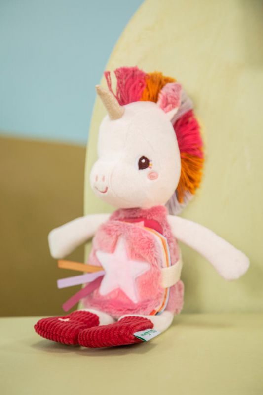Fabricado con materiales blandos y seguros, es perfecto para las manos pequeñas y se puede llevar fácilmente en la cuna, el coche o el carrito.
