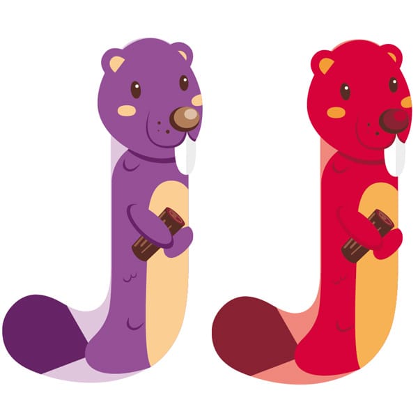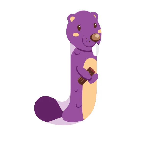Letra de madera J animales