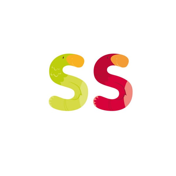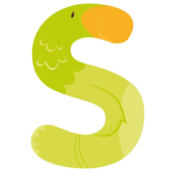 Letra de madera S animales
