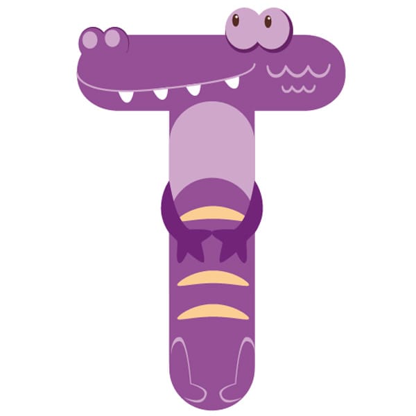 Letra de madera T animales