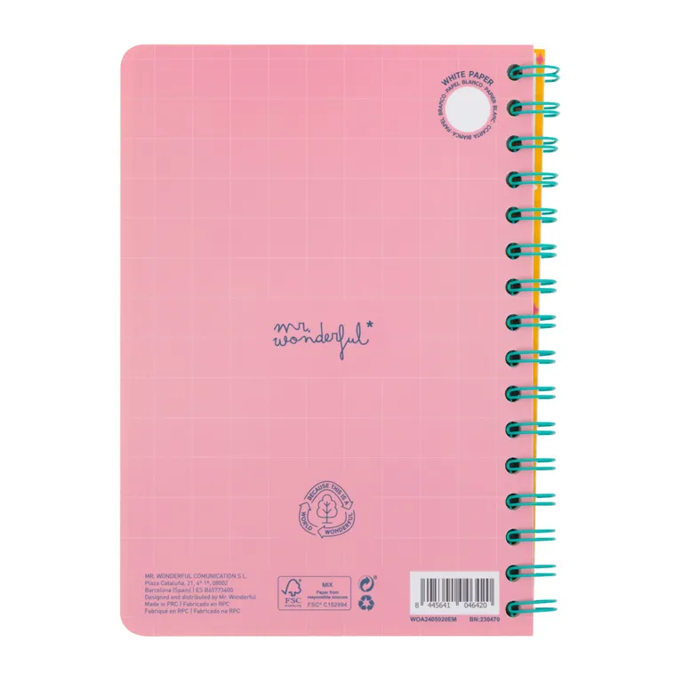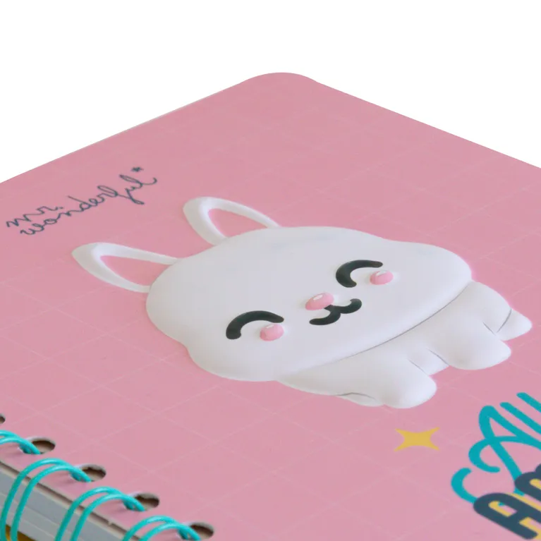 Libreta de tamaño A5 con la portada en 3D, con un conejo Mr. Wonderful en ella. Con 80 hojas de papel blanco.