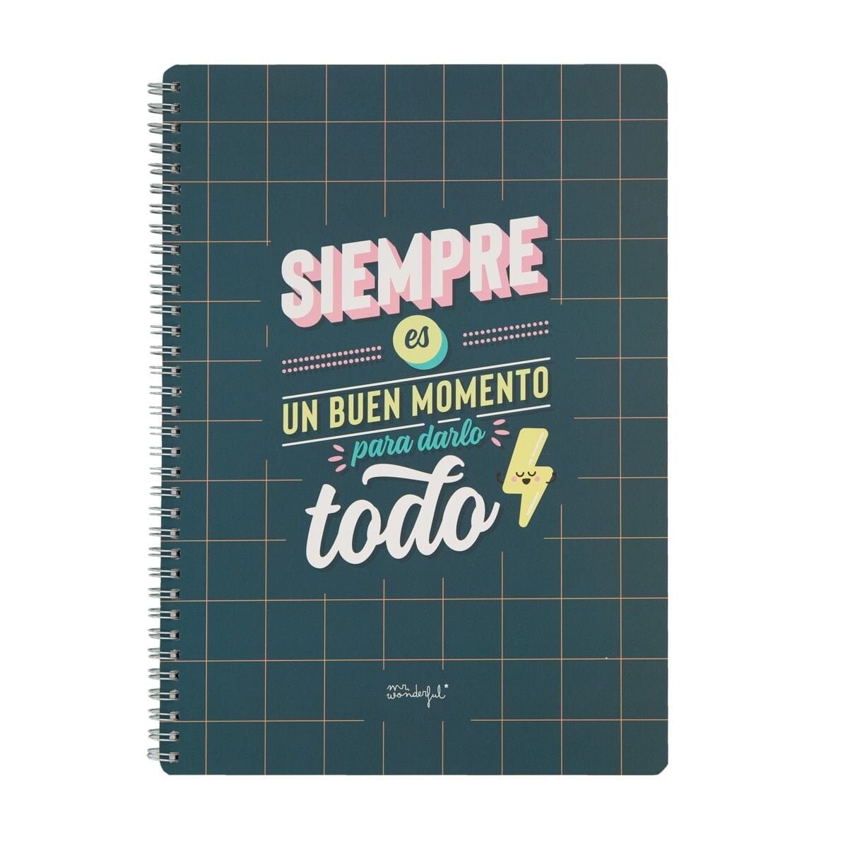 Libreta en tamaño A4 con mensaje motivacional Mr. Wonderful. Con 160 páginas con cuadrícula, encuadernación en espiral y una hoja de pegatinas.