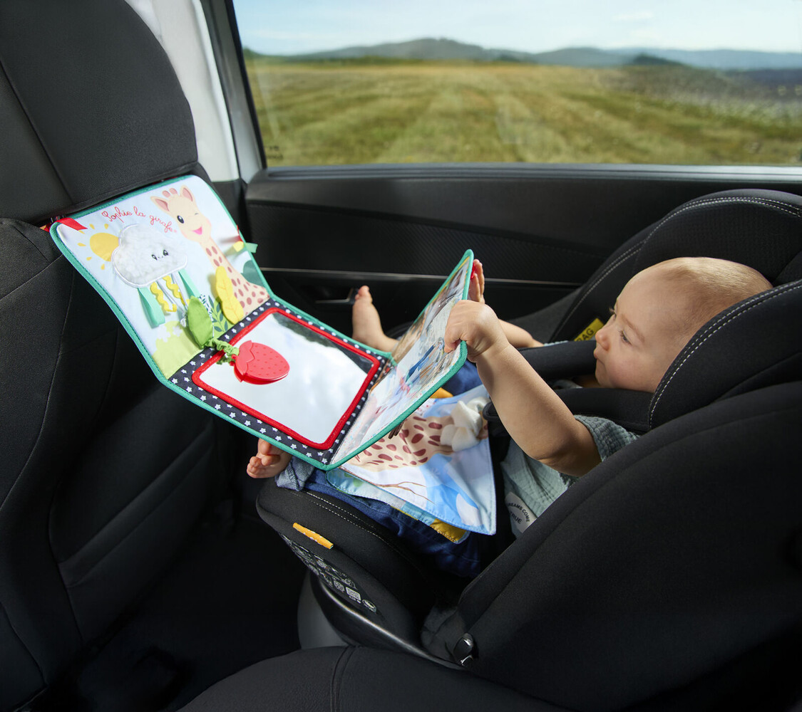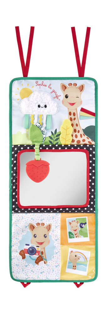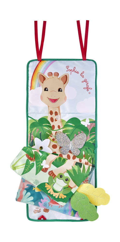 Libro caballete Sophie la girafe: juguete sensorial desplegable con múltiples actividades, texturas y elementos interactivos para estimular los sentidos del bebé.