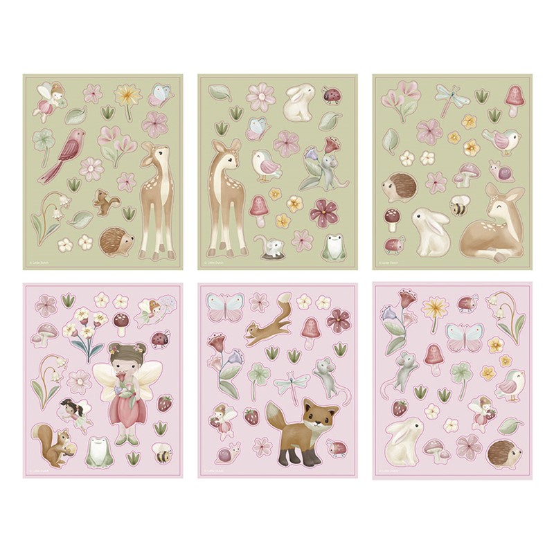 Libro de pegatinas de Little Dutch, viene en un expositor de 18 unidades. Cada folleto contiene más de 100 pegatinas con decoración impresa a doble cara con temática de jardín de hadas. Precio por unidad.