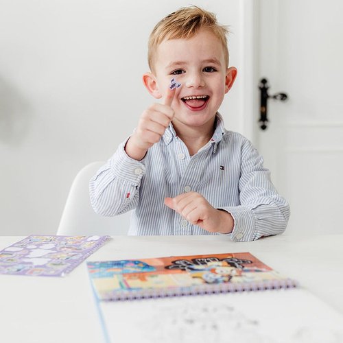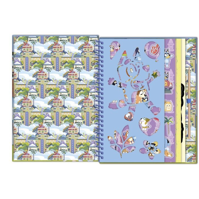 Libro de rasca y gana azul con encuadernación de espiral. Hacer 10 tarjetas de rascar incluyendo páginas de dibujo, pegatinas, fondo y pluma de rascar.