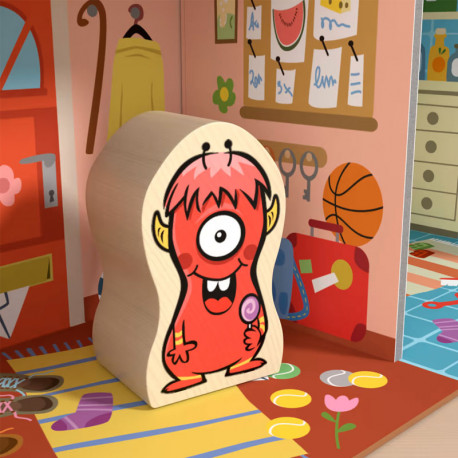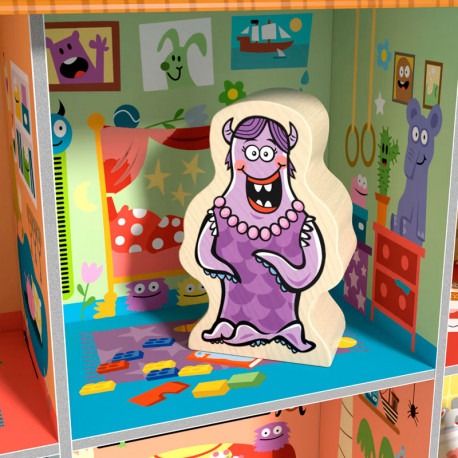A la pícara Wanda le encanta jugar al escondite. Toda la familia está continuamente buscando a la monstruita roja. Los niños y niñas ayudan a esta familia de monstruos a pillar a Wanda en su bulliciosa y colorida casa. Colocan cada monstruo en una habitación determinada y descubren con habilidad dónde se esconde Wanda. Para ello, se requiere observar con atención, realizar combinaciones y ubicarse a nivel espacial.