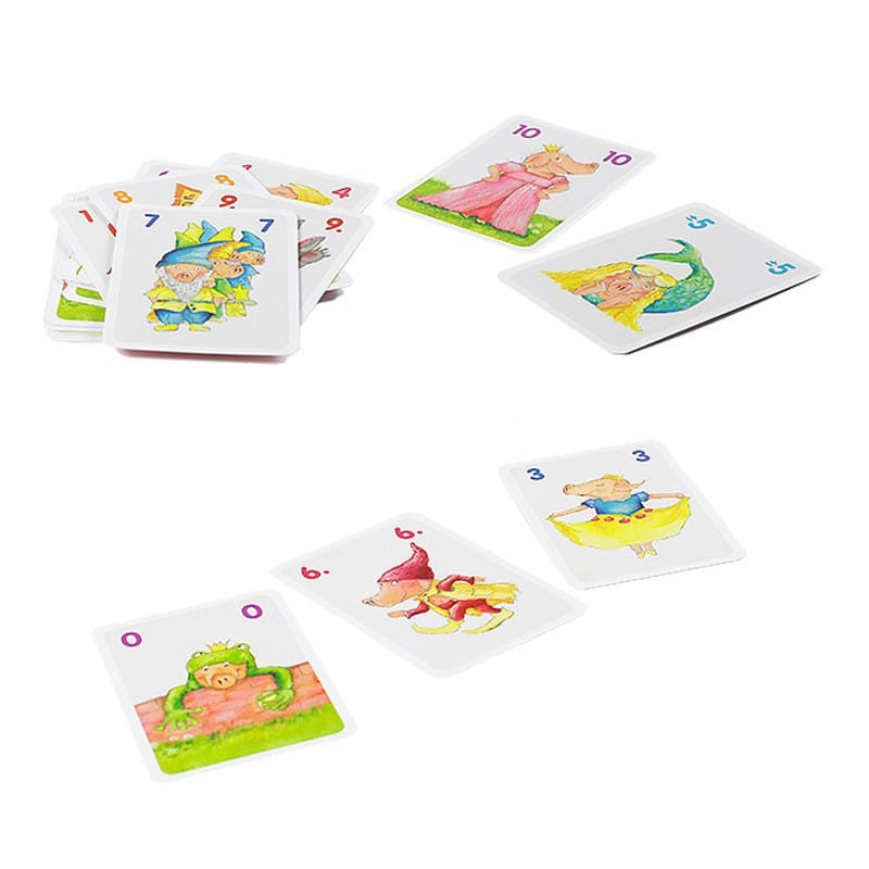 En Los 10 Cerditos todo gira alrededor del número 10. Cada vez que sumes 10 en el montón, te llevarás todas las cartas jugadas. Pero no te pases ni un pelo ¡o se llevará las cartas el vecino!