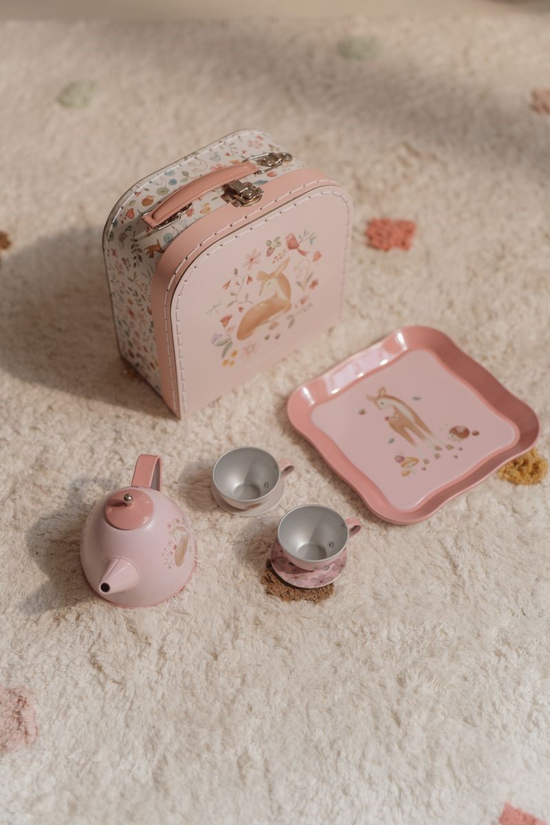 Tu pequeño organizará las fiestas de té más divertidas con el juego de té de Little Dutch con diseño de jardín de hadas. Este juego de té en lata incluye dos tazas de té, dos platillos, una bandeja y una tetera con tapa. Guarda el juego en el bonito estuche de picnic y llévalo contigo a donde quiera que vayas. El estuche presenta un colorido estampado de arcoíris. Jugar con el juego de té también estimula las habilidades motoras y sociales de tu hijo. Apto a partir de los 3 años. Material: metal.