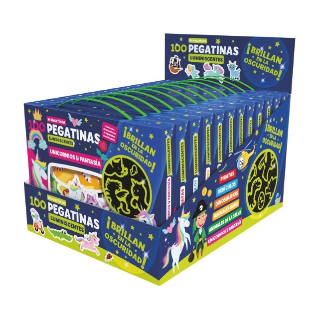 Preciosos Kit que contiene pegatinas luniniscentes y un libro con actividades y escenarios.