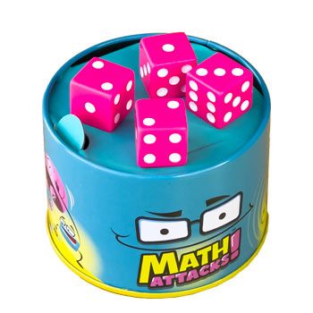 Math Attacks de Mercurio, creado por Tricky y Big Ideas, es un juego de mesa que combina cálculo mental y rapidez. En cada ronda se colocan 10 cartas en la mesa y se lanzan los dados.