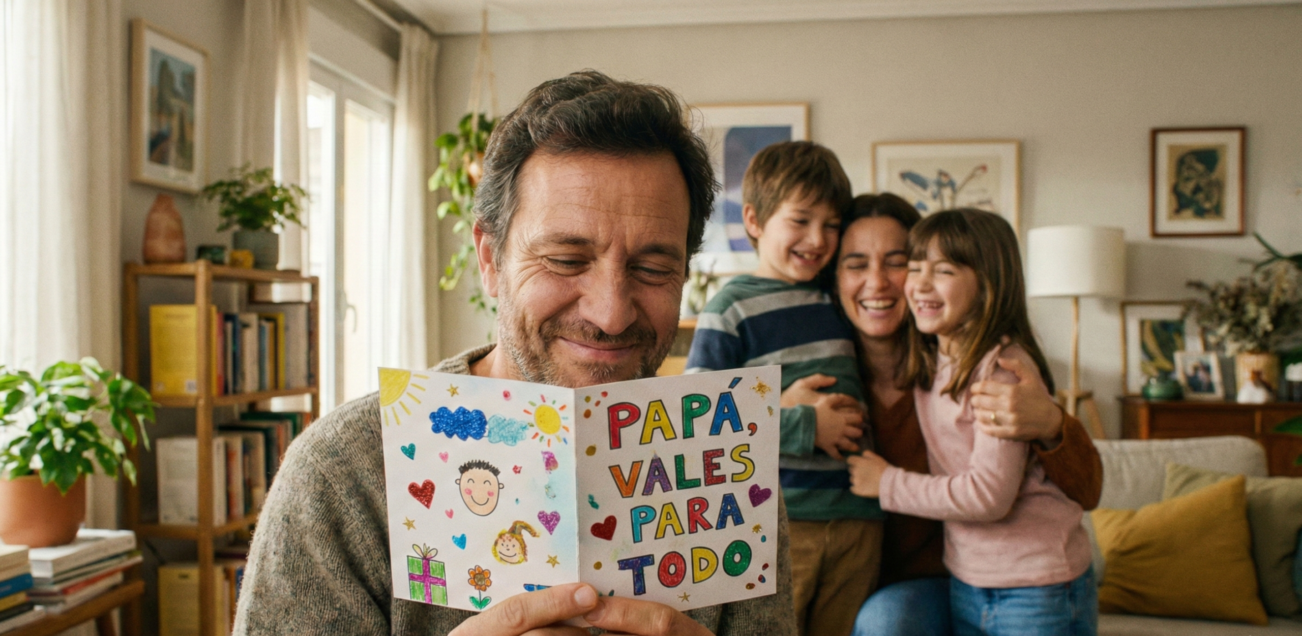 A veces, el mayor impacto está en los detalles más pequeños. Esta postal viene acompañada de un bonito llavero y el mensaje «Papá vales para todo». Es la opción perfecta si buscas regalos del dia del padre que sirvan como complemento a otro detalle, o si tienes un presupuesto ajustado pero no quieres renunciar a emocionarle.