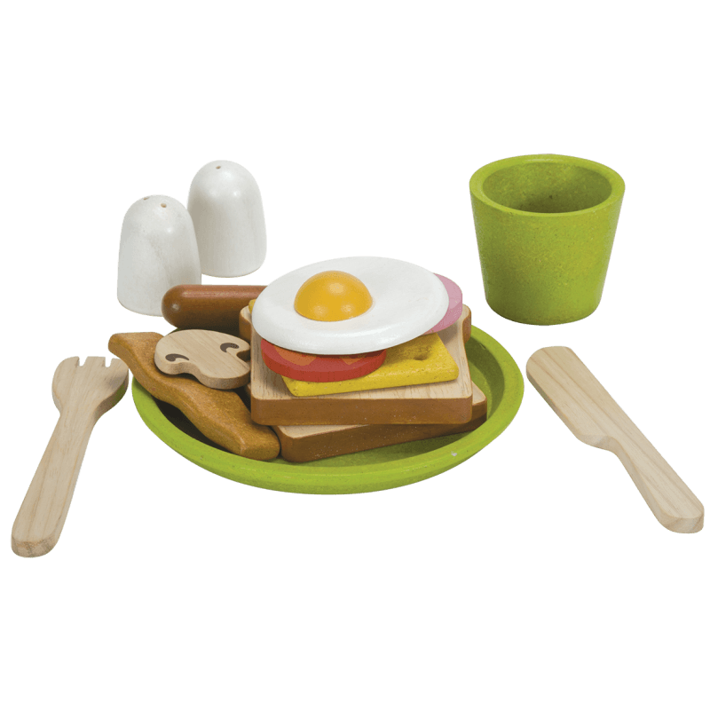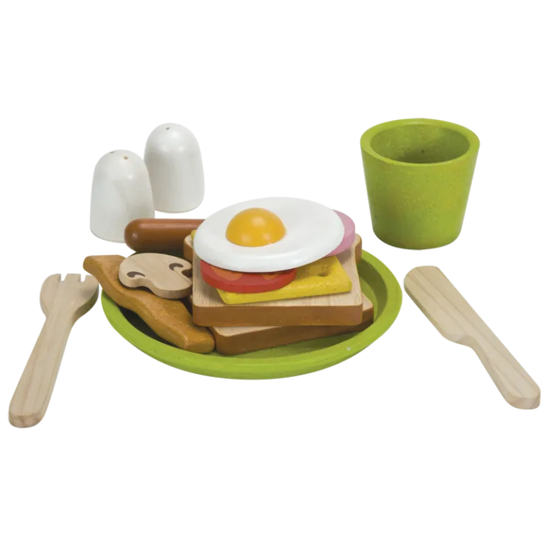 Plantoys nos trae desde Tailandia este bonito juego de madera para un fuerte y completo desayuno. ¡Tan importante es comer adecuadamente como tener un buen desayuno mañanero!