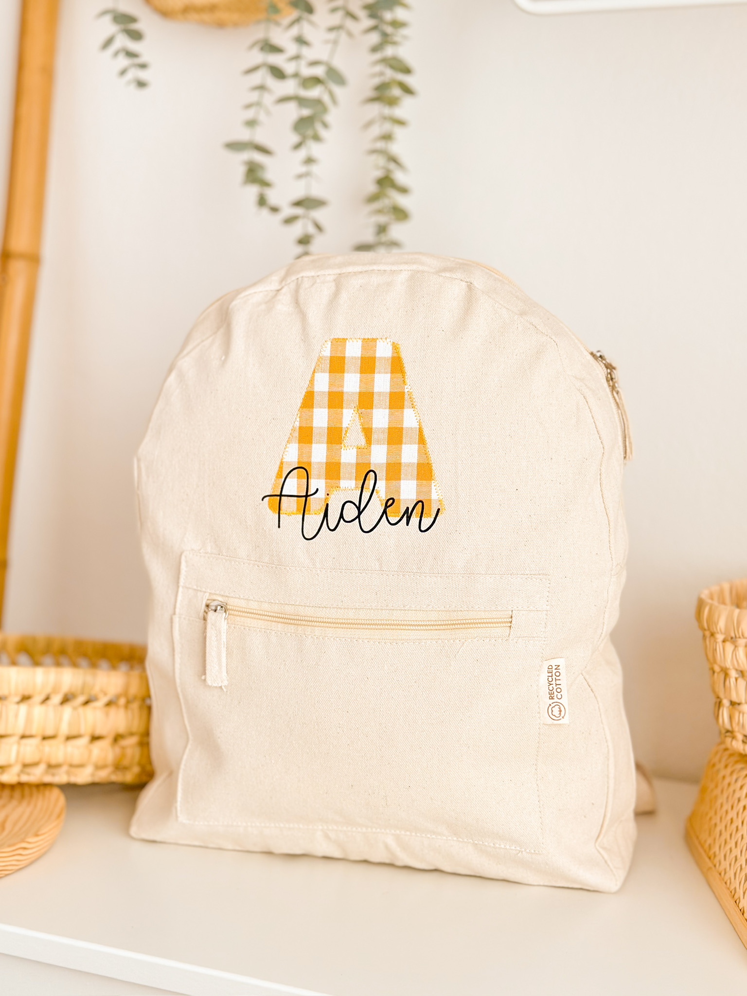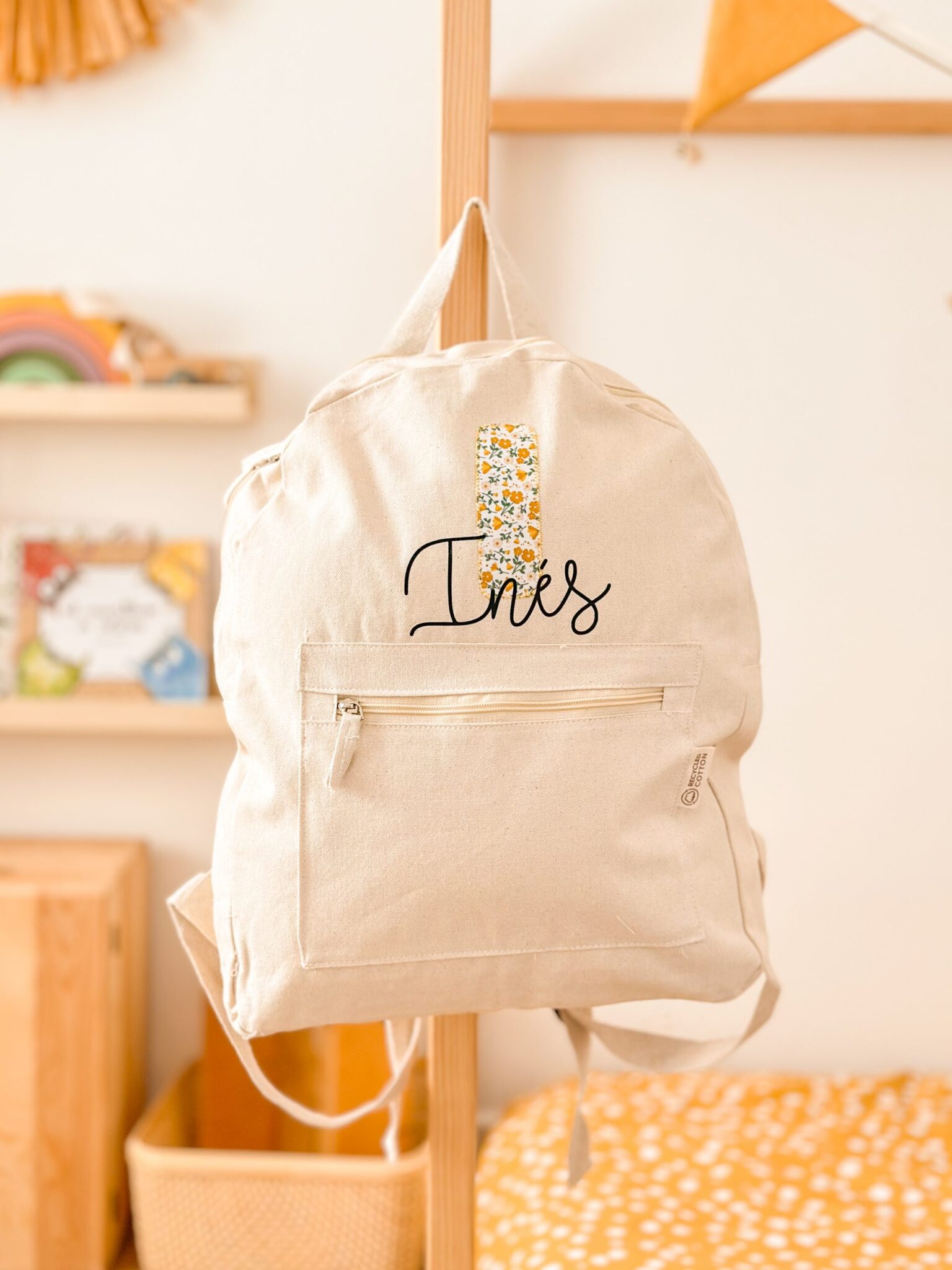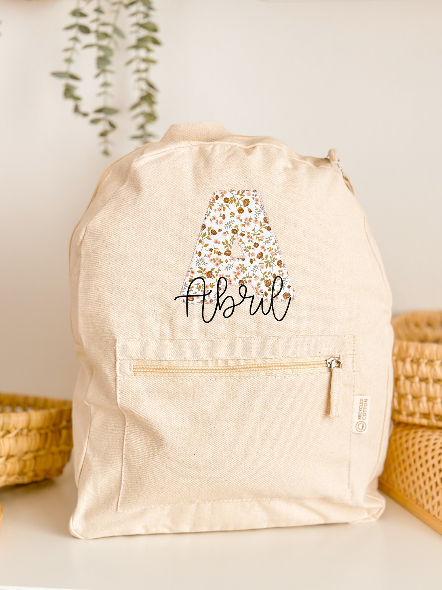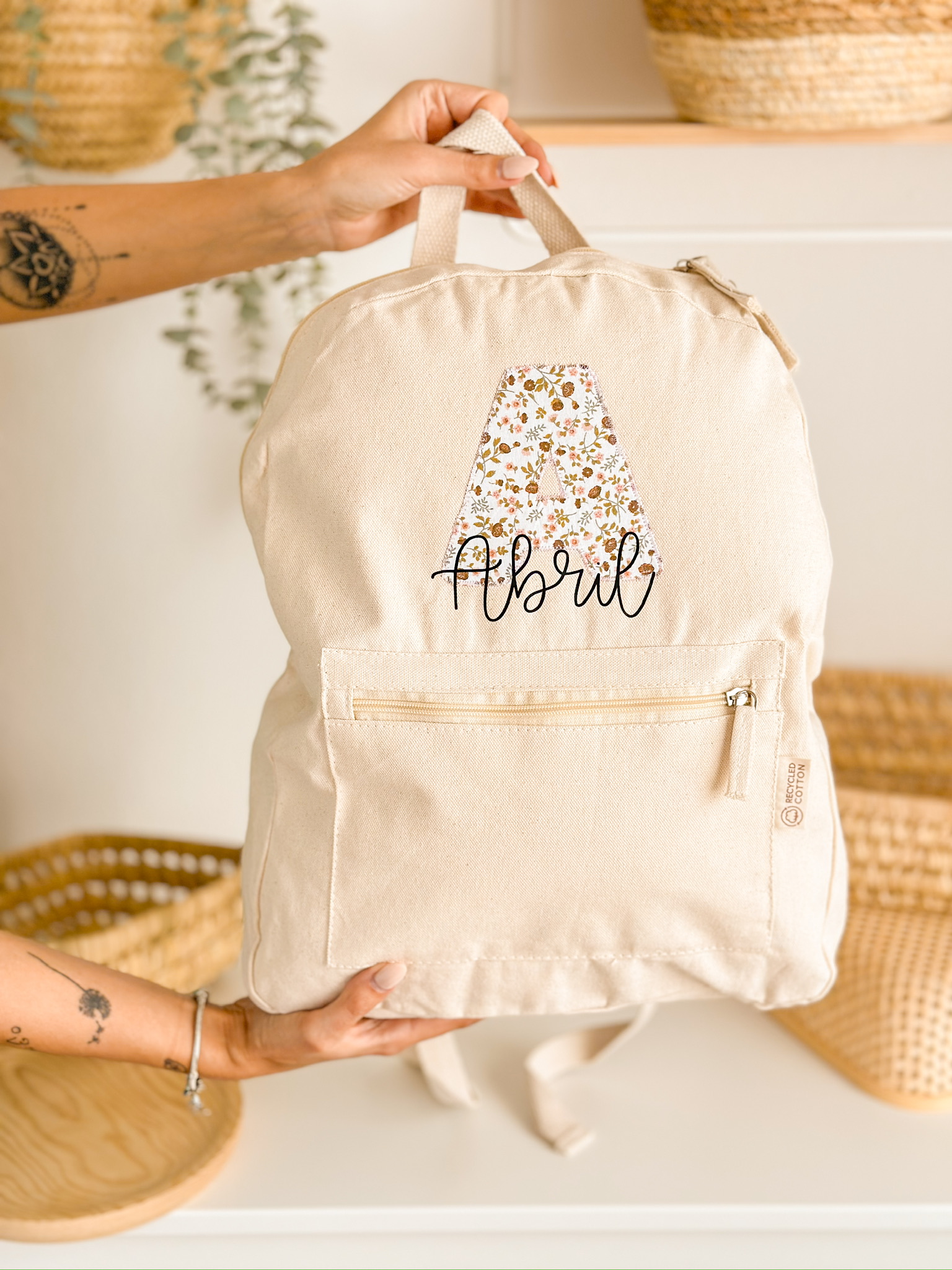 Modelo exclusivo de Hilocreations personalizada en nuestro taller con materiales sostenibles (algodón 100% ecológico). Elige tu estampado favorito para la inicial,