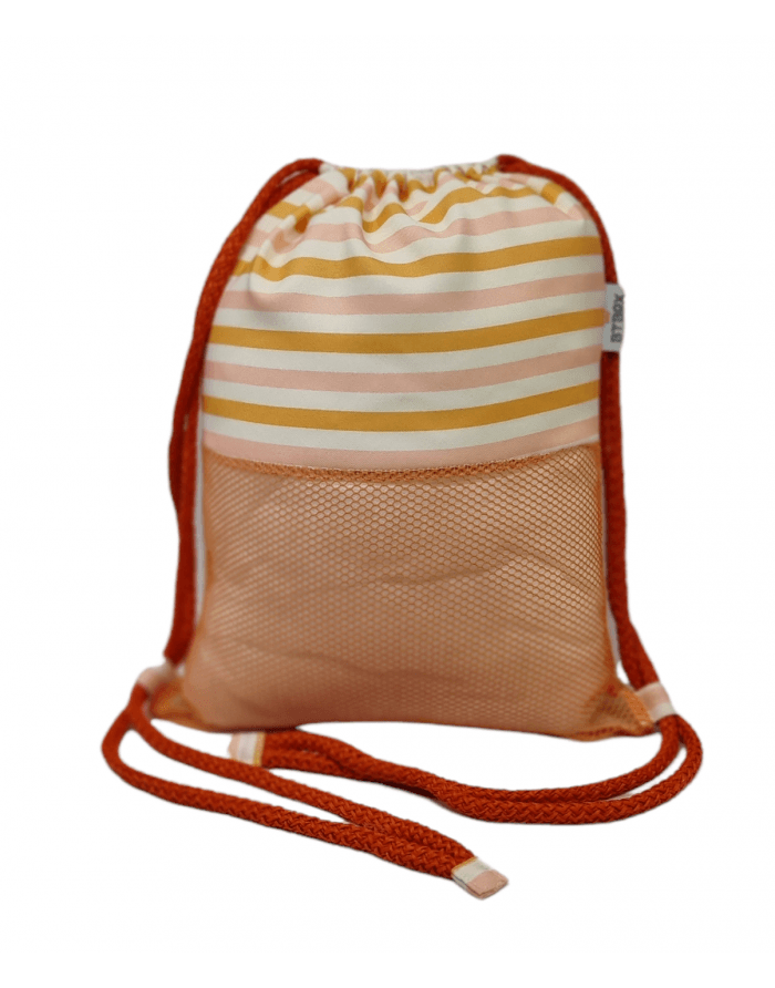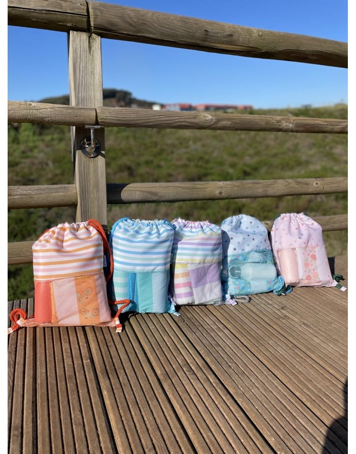 Mochila saco con rejilla en la base y en la parte delantera para evitar arena en el interior