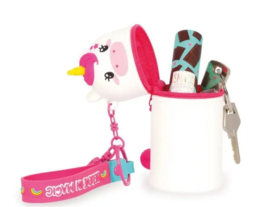 El Monedero con llavero Unicornio Mini Kawaii de Legami es un accesorio práctico y divertido diseñado para guardar pequeños objetos del día a día. Su diseño con cara de unicornio, cuerno y detalles en rosa lo convierte en un complemento original con estilo kawaii.