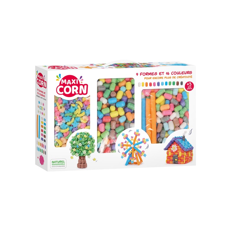 ¡ El paquete Maxi Corn  contiene casi 1000 copos en 9 formas y 16 colores diferentes para una creatividad aún mayor !