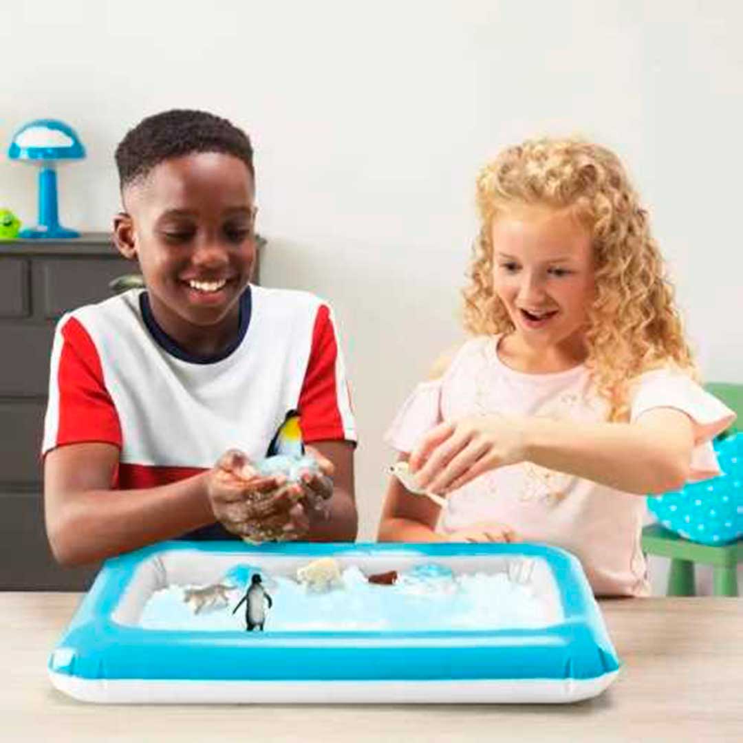Pack Sensorial Invierno – Juego sensorial con bandeja hinchable, nieve y figuras – Exploración creativa desde 3 años