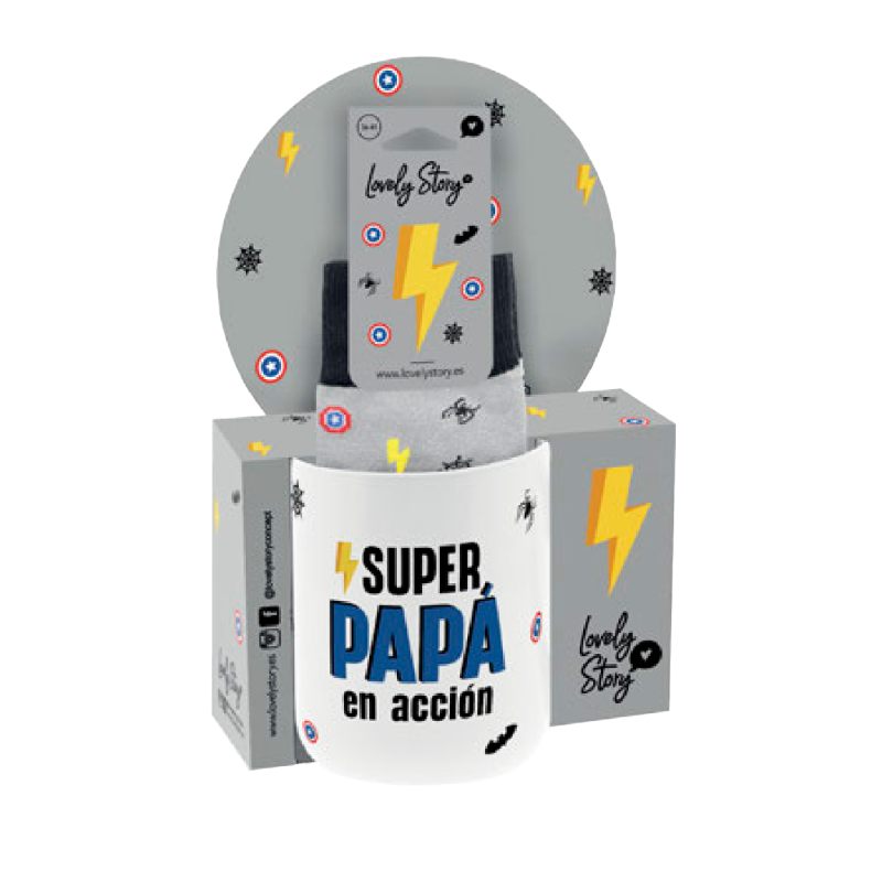 Pack taza y calcetines Super Papá en acción – Lovely Story