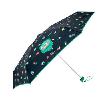 Paraguas plegable Mr. Wonderful de formato «»viaje»», con diseño original y frase motivadora en inglés.