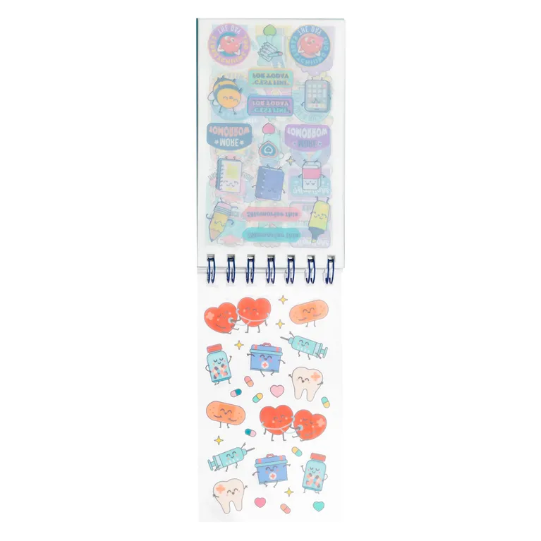 ¡Se acabaron los apuntes aburridos! Con todas las pegatinas que encontrarás en este bloc, podrás decorarlo absolutamente todo.