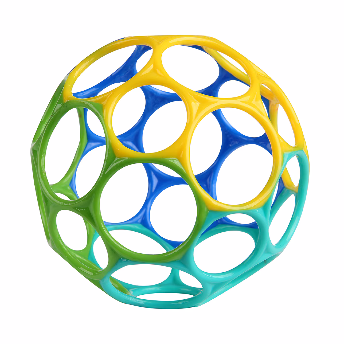 Una pelota flexible y ligera con aberturas amplias, perfecta como primer juguete para que el bebé agarre, explore y juegue con seguridad.