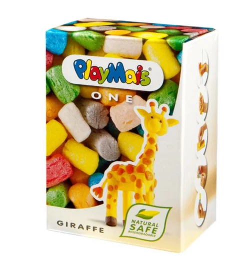 PlayMais® es un original juego de construcción y modelado compuesto de copos multicolores fabricados con maíz 100% natural y teñidos con colorante alimentario.