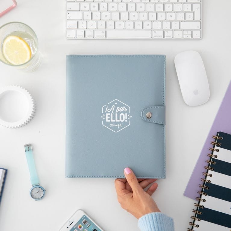 Hace unos días tuviste un sueño muy chulo, en el que tenías bajo control tus documentos y otras cosas importantes. Como queremos hacer realidad lo que te cuenta Morfeo por las noches, hemos diseñado este portadocumentos al más puro estilo Mr. Wonderful. Esto te va a venir genial, porque tiene todos los detalles que aparecían en tu sueño. ¡Ya verás que no falta ninguno! Nadie te podrá decir aquello de que pierdes los papeles, porque los vas a llevar bien guardaditos en su bolsillo interior. Sabemos lo importante que es para ti mantener a salvo tu boli favorito y, para protegerlo contra las malas artes de la fuerza de la gravedad, hemos colocado una cinta elástica que lo abrazará bien fuerte y con mucho cariño. También cuenta con unas ranuras para tus tarjetas de crédito o de visita. Tu móvil tiene más información sobre ti incluso que tu madre y no puedes permitirte perderlo. En su sitio especial, se sentirá como en casa durante los poquitos ratos que le permitas descansar. Por si fuera poco, hemos querido asegurarnos de que el interior esté protegido y le hemos añadido unos esquineros que mantendrán a salvo los cantos de tu agenda, libreta o planificador preferido.