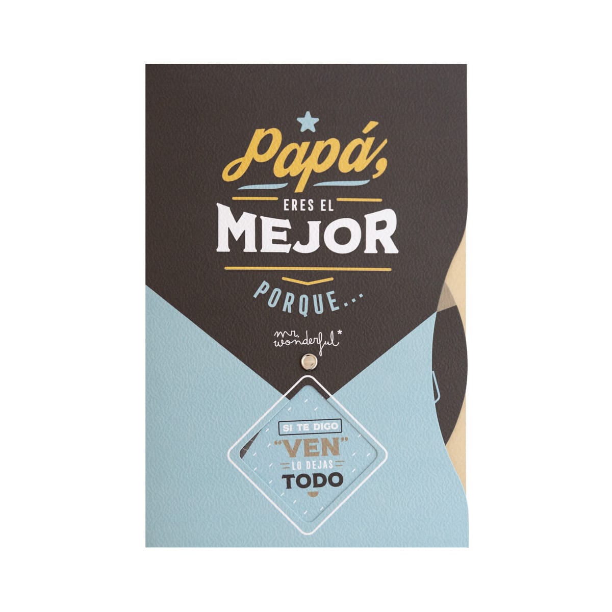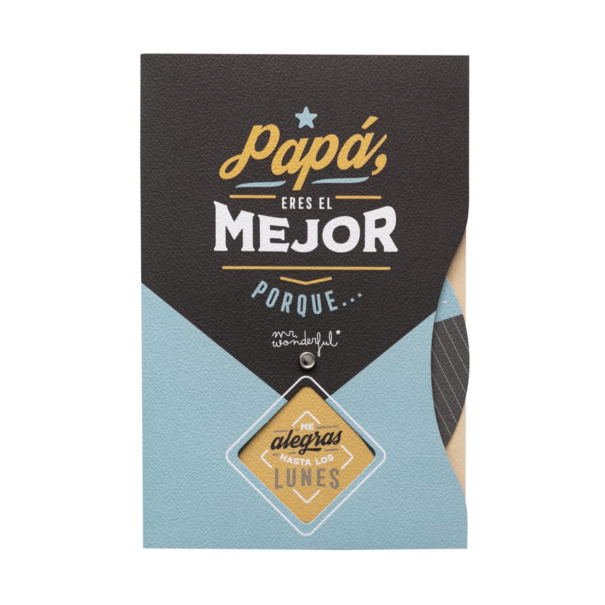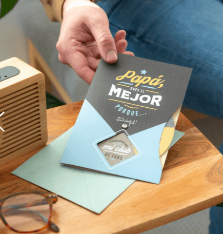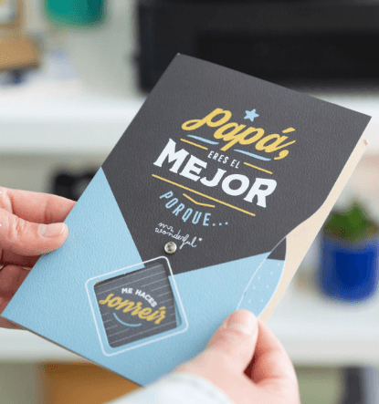 Postal con mensaje para padres, incluye una ruleta que, al girarla, va descubriendo hasta 5 mensajes distintos dedicados a papá. Incluye sobre.