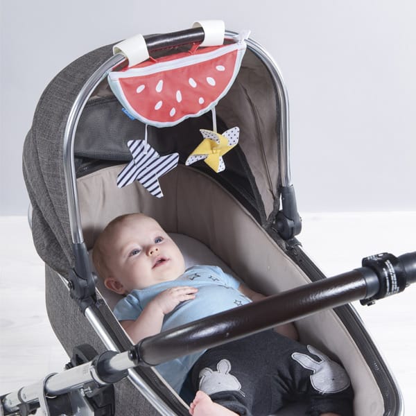 Es imprescindible proteger a los peques de los rayos solares durante los trayectos exteriores. Este protector solar para sillitas y cochecitos en bolsa en forma de sandía, cuenta con accesorios de colores colgantes para que el peque se divierta y entretenga durante el trayecto. ¡Ideal para el desarrollo de los sentidos del bebé!