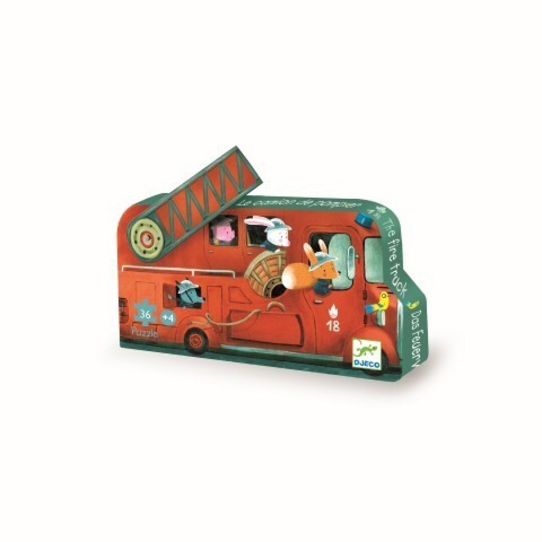 Puzzle Camión de Bomberos de Djeco – 16 piezas con caja decorativa en forma de vehículo