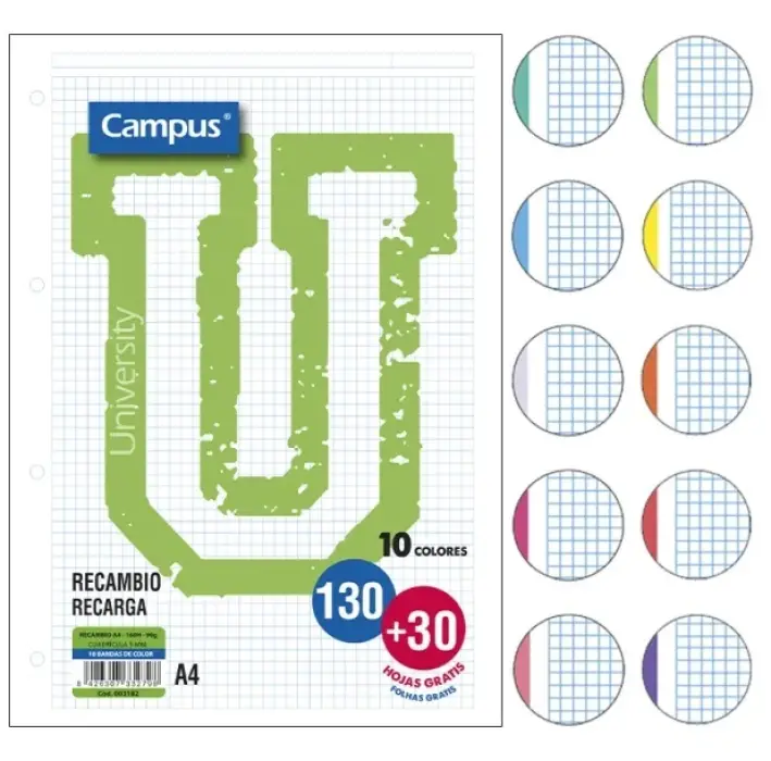Recambio folio campus 10 colores 160 hojas