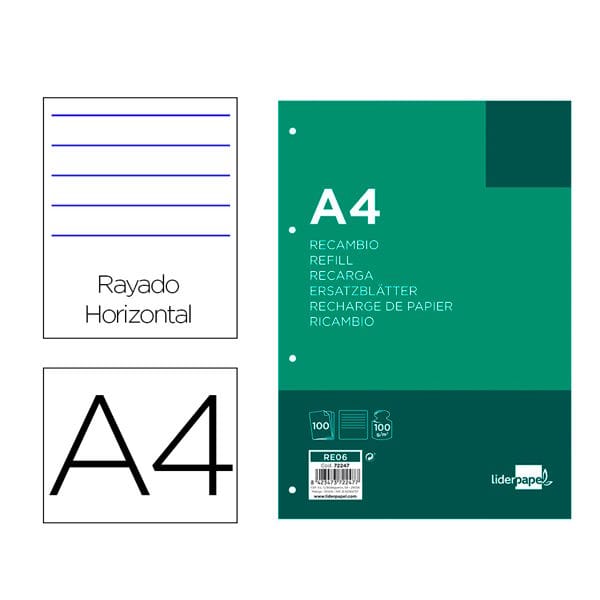 Recambio Liderpapel A4 rayado horizontal colores