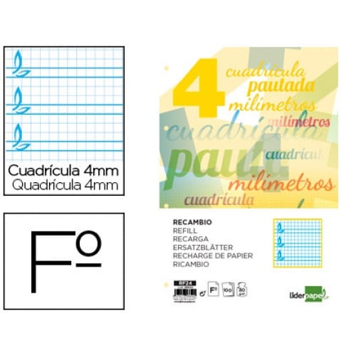 Recambios Liderpapel A4 cuadros colores