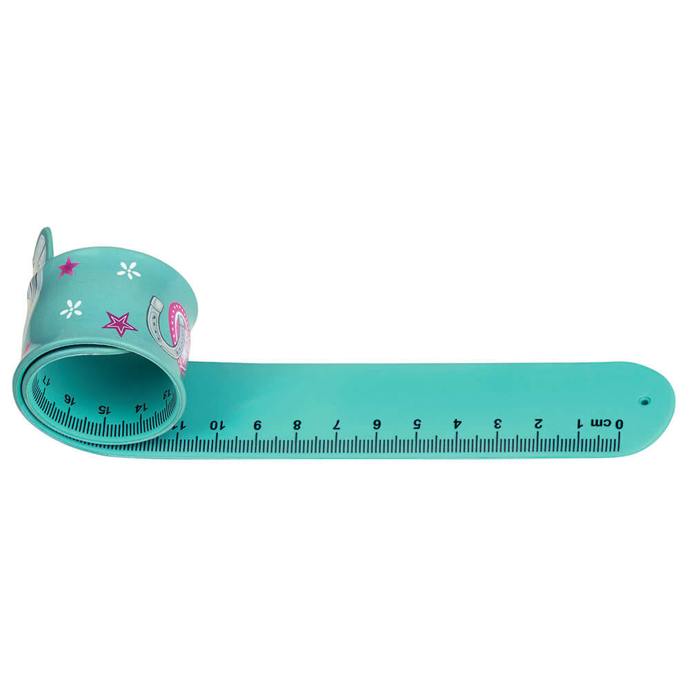 La regla se convierte en un bonito accesorio para la muñeca, enrollándola con la mano.