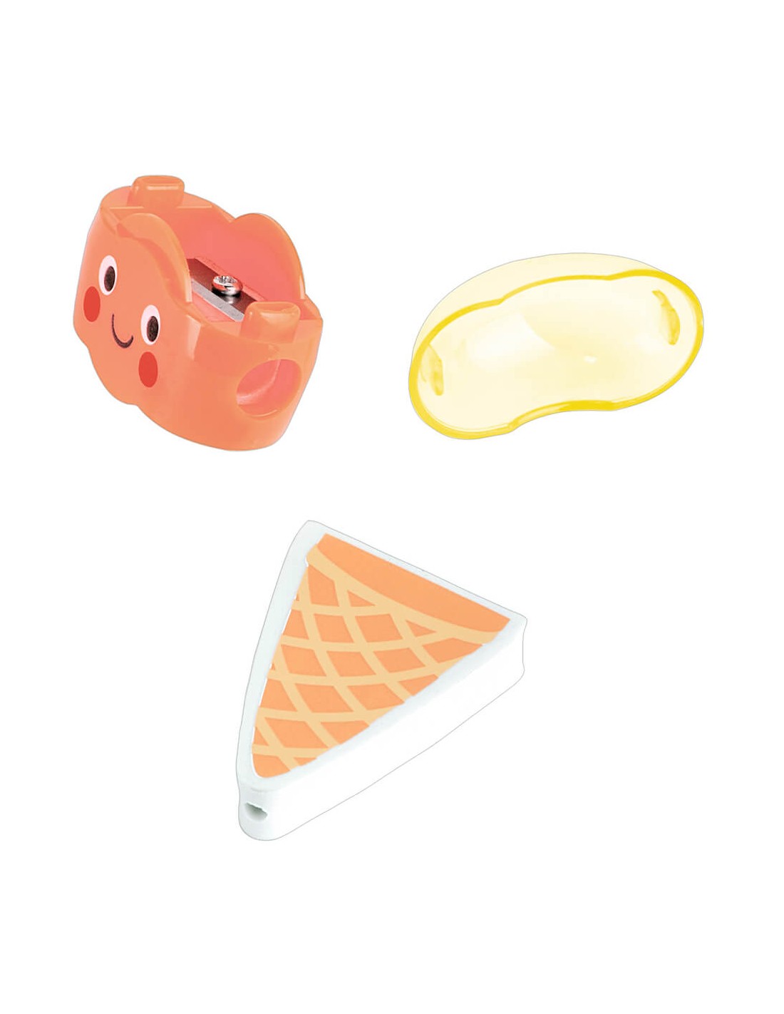 Este accesorio escolar combina en un solo producto dos imprescindibles: un sacapuntas con depósito y una goma de borrar, con un diseño alegre y motivador que encantará a los peques. Perfecto para llevar en el estuche o la mochila, siempre a mano para los deberes y manualidades.