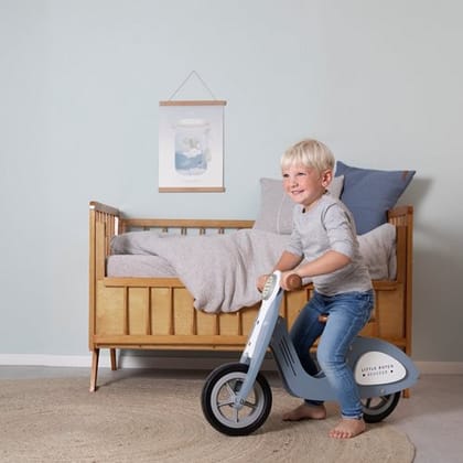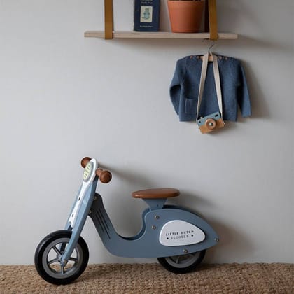 Scooter de madera sin pedales azul – Little Dutch