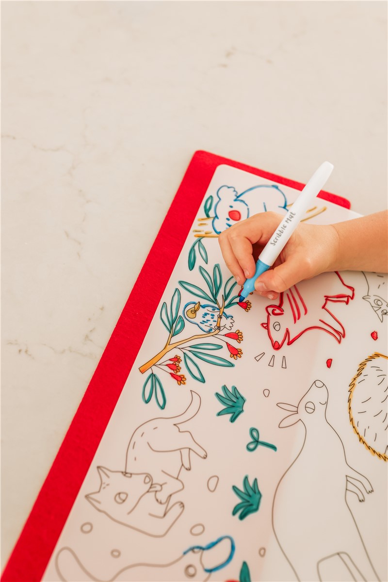 Scribble Animales Australia – Tapete reutilizable para colorear – Scribble – Incluye 4 rotuladores